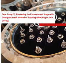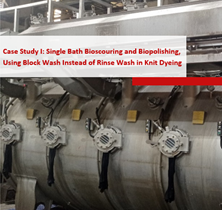 The conventional dyeing process of single-part cotton knit fabric with black colour has been modified by introducing bioscouring instead of conventional scouring, combining the bioscouring and biopolishing steps in the same bath. Moreover, water consumption was reduced using block wash instead of rinse wash. In a winch dyeing machine, a 5-minute rinse wash typically consumes around 9-10 L/kg of water. In contrast, a block wash requires only 4-5 L/kg of water, reducing water consumption by half.
