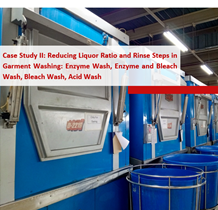 Enzyme washing process has been modified by reducing the liquor ratio to 1:3 from 1:4 for each step.