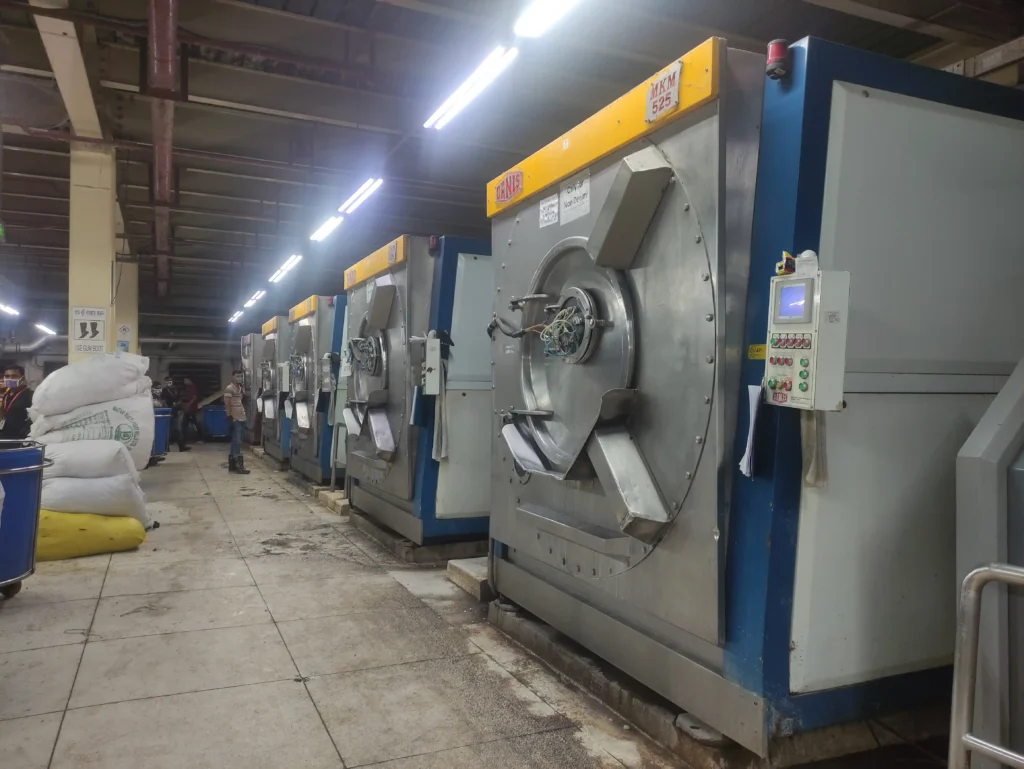 In the pretreatment, total 6 baths are usually required for the pretreatment before the dyeing step: scouring-bleaching + hot wash + rinse wash + peroxide killing and neutralization + enzyme biopolishing + rinse wash. After dyeing, 2 rinse wash steps are usually required. After neutralization and soaping, 2 rinse wash steps and fixing are usually required, such as 2 rinse wash + 1 bath for fixing.